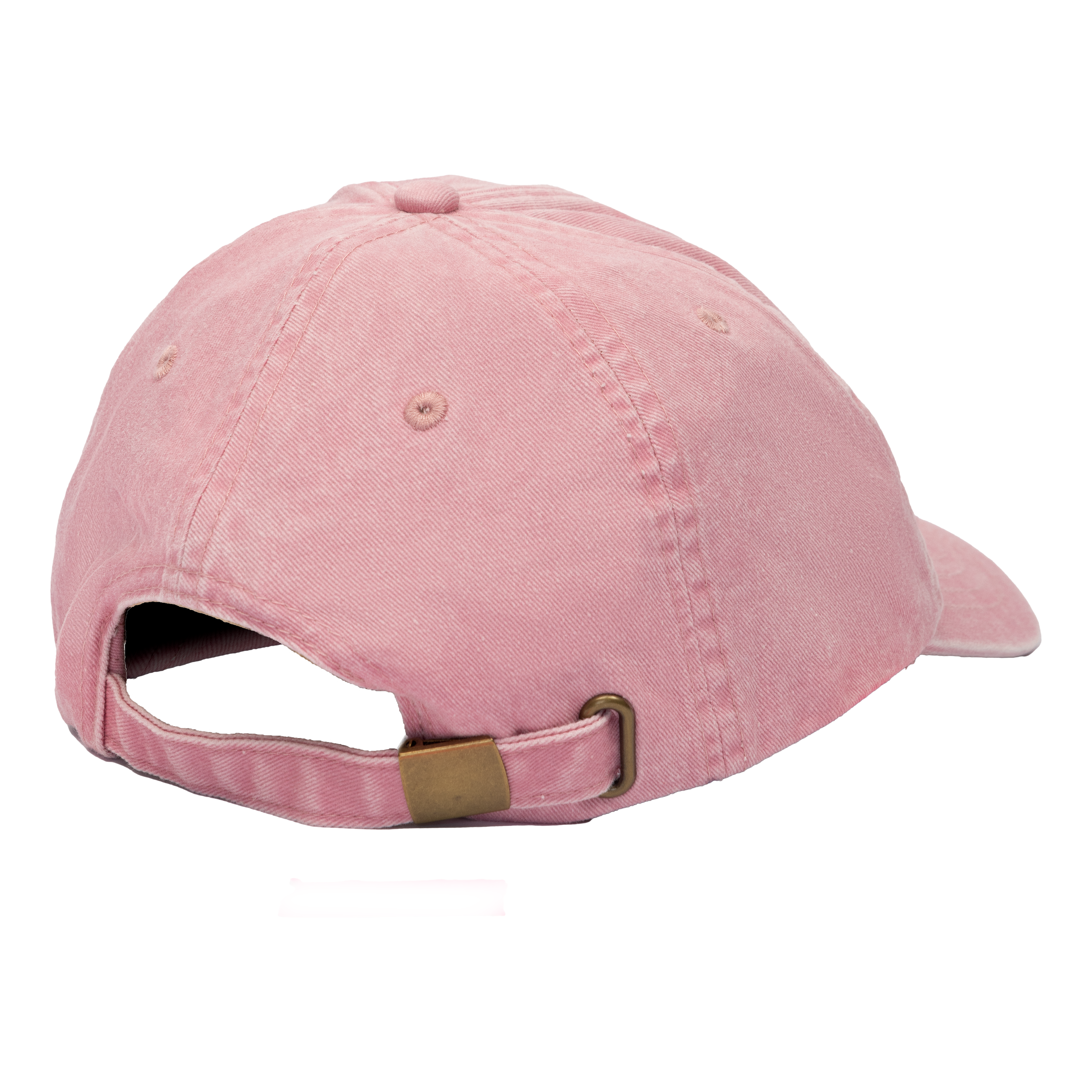 This vintage pink, 100% cotton ''dad-style'' cap features an embroidered collegiate take on our Wild Donkey logo.