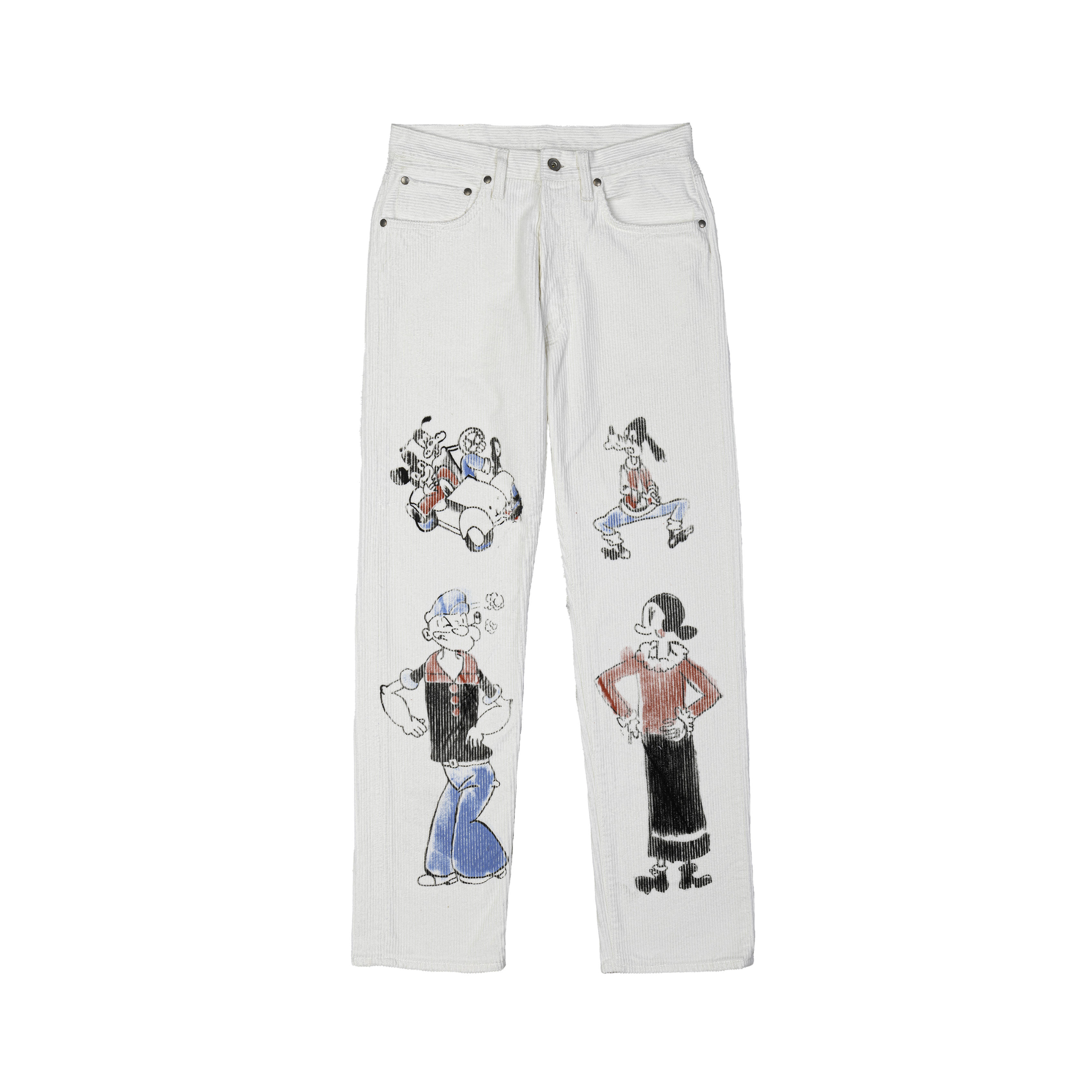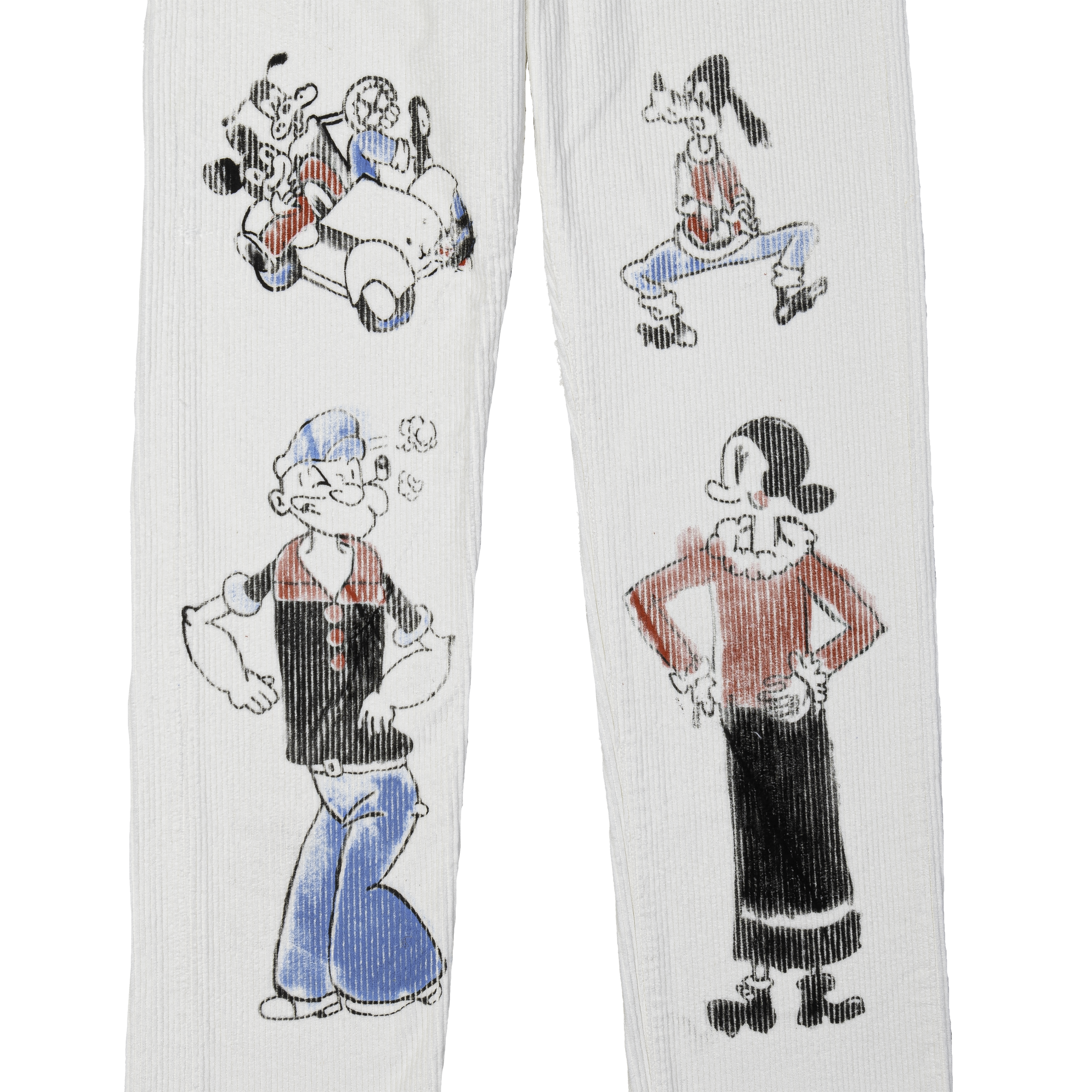 Cream Character Print Corduroy Trousers