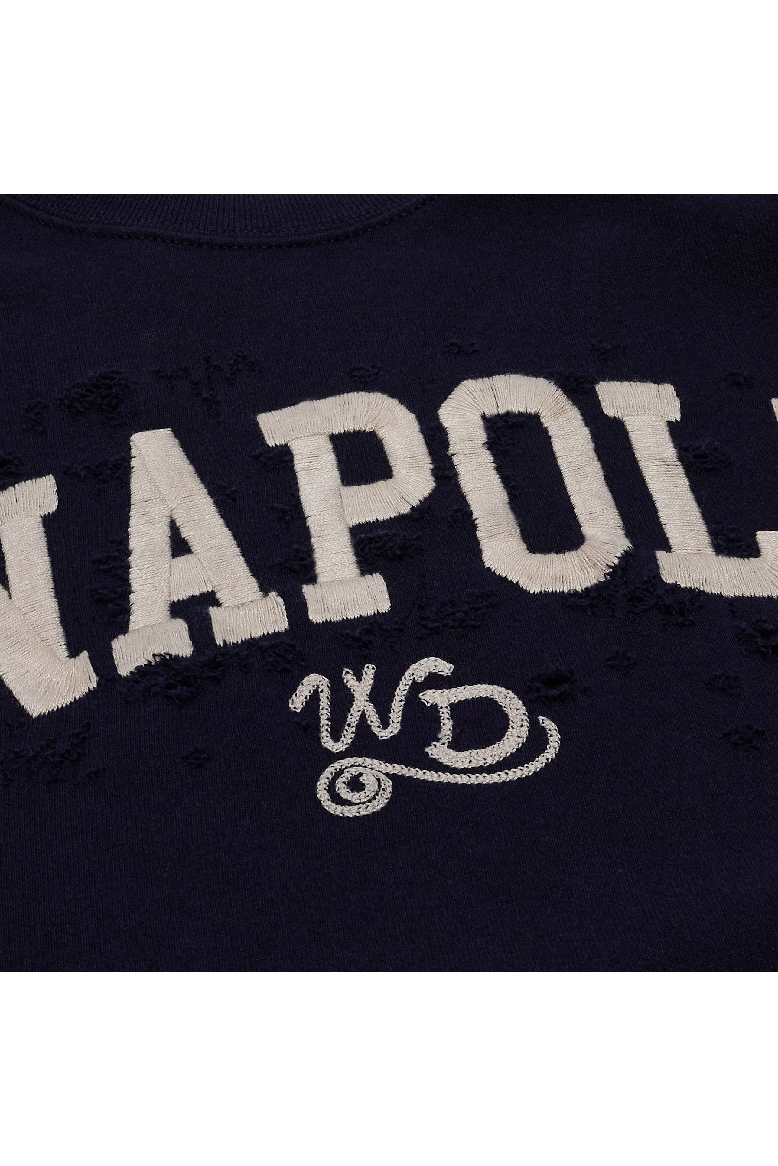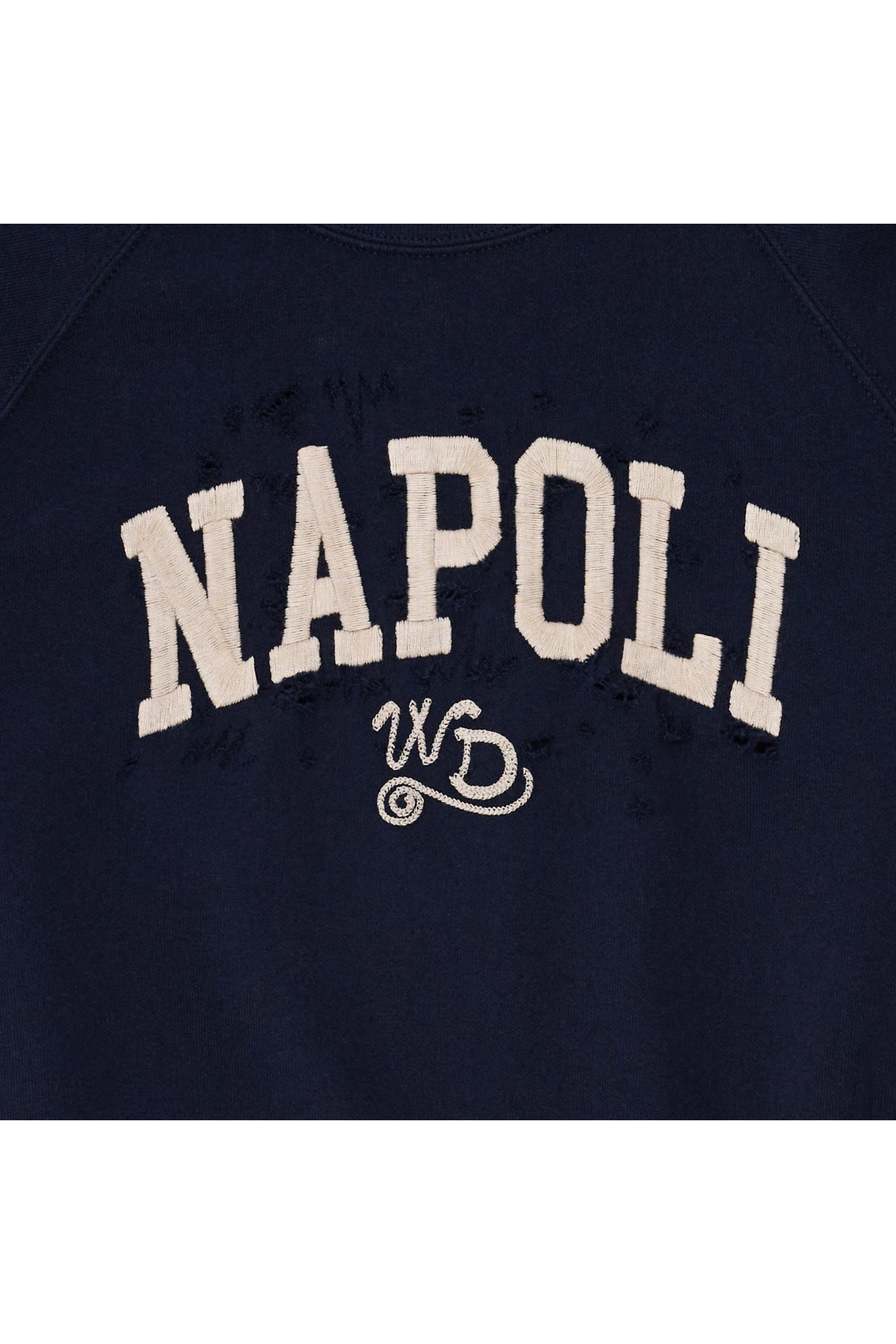 The Napoli Raglan Crewneck channels the spirit of old-school varsity wear with a clean finish and timeless character. Made in Italy and cut from heavyweight fleece, it features contrast raglan sleeves and a vintage-inspired front graphic that nods to collegiate sport heritage. The faded deep navy base and soft-brushed feel give it instant lived-in appeal — designed for layering with denim or worn oversized with joggers for relaxed, everyday style.