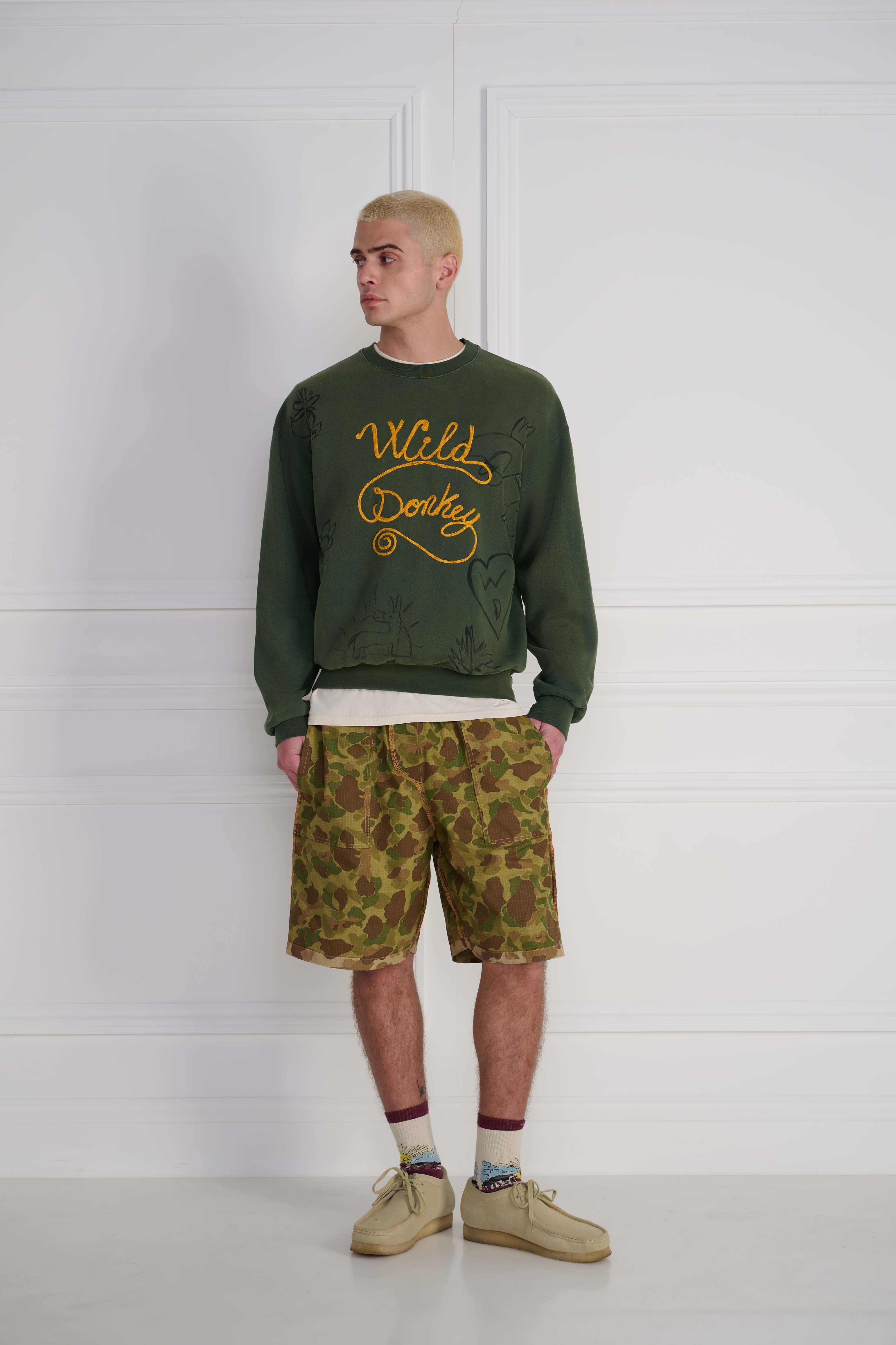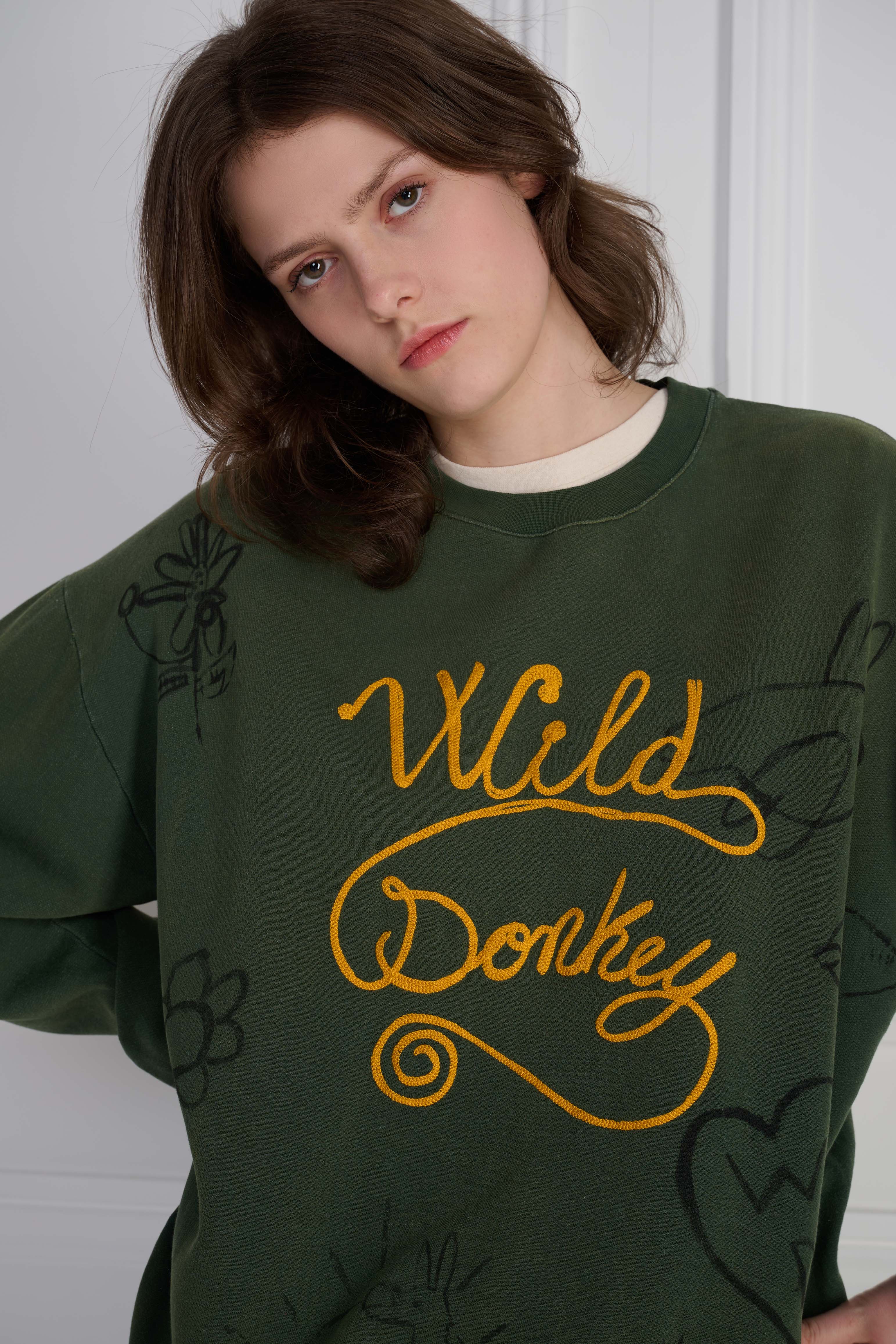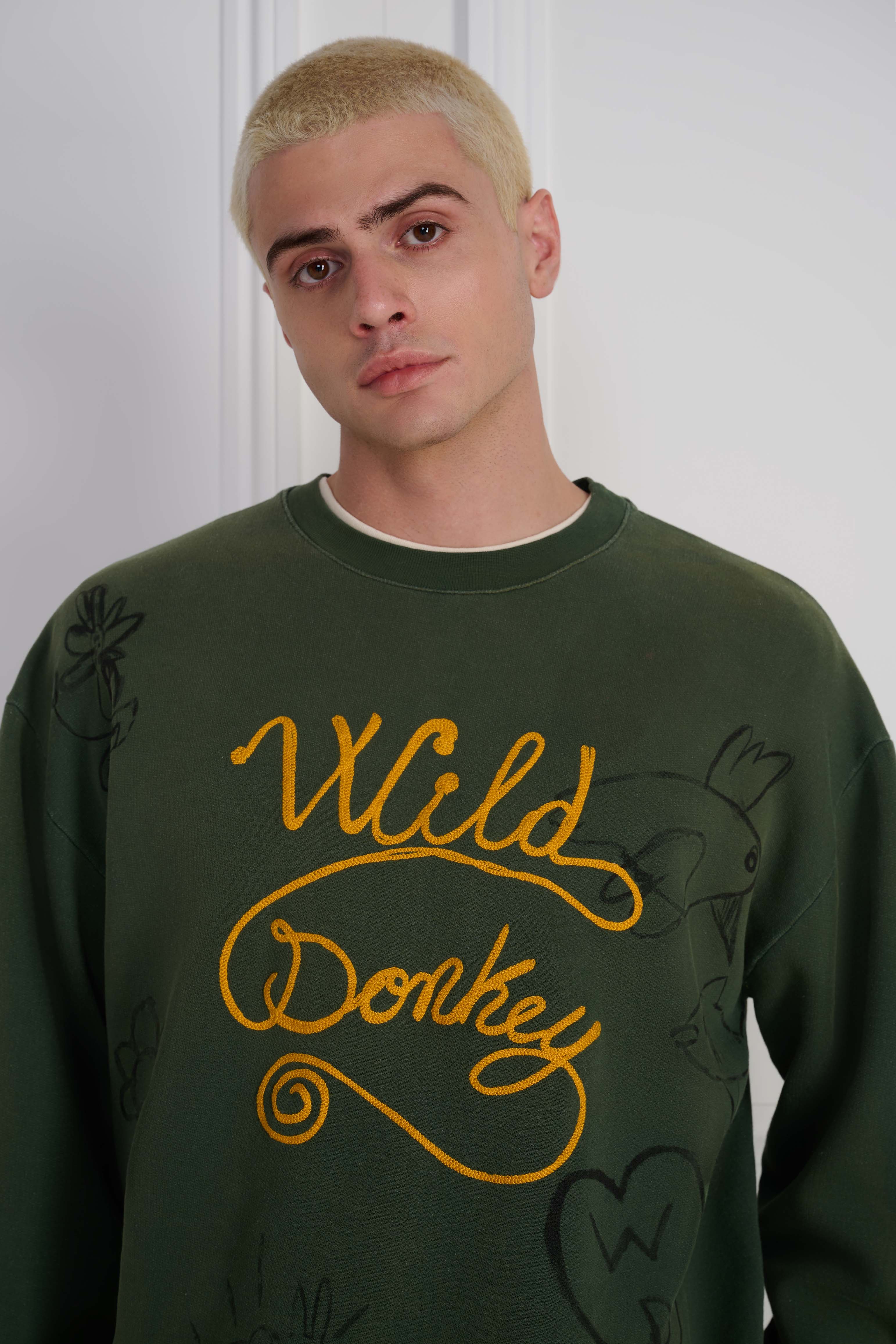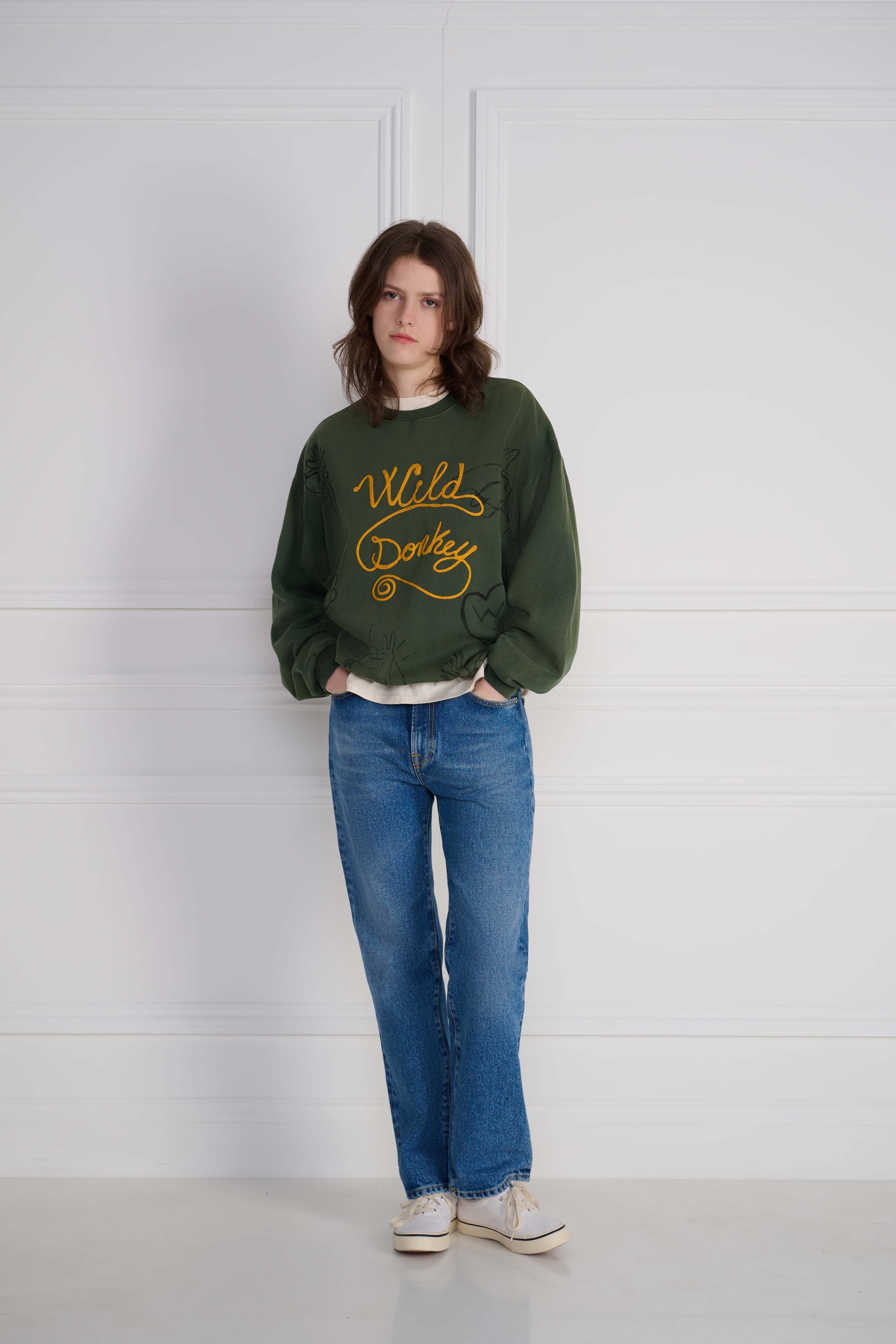 The Scribbles 2 Crewneck Crewneck in Faded Olive Green nods to vintage sweats with a clean, wearable attitude. Finished with dyeing + fading and embroidery, Softened by treatment and built with Italian craft, it’s a staple designed to age beautifully over time.
