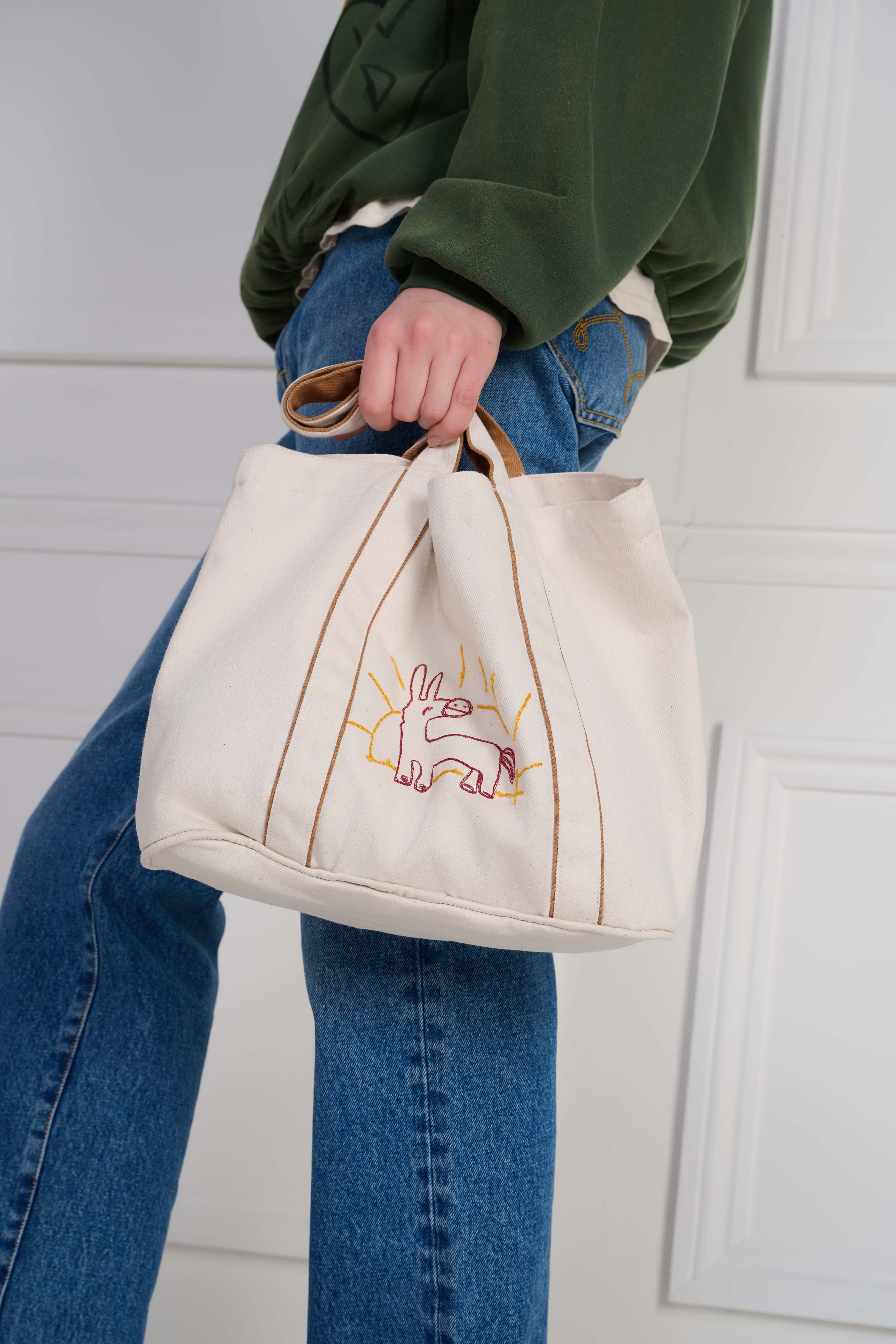 - Embroidery with dyeing + fading finish